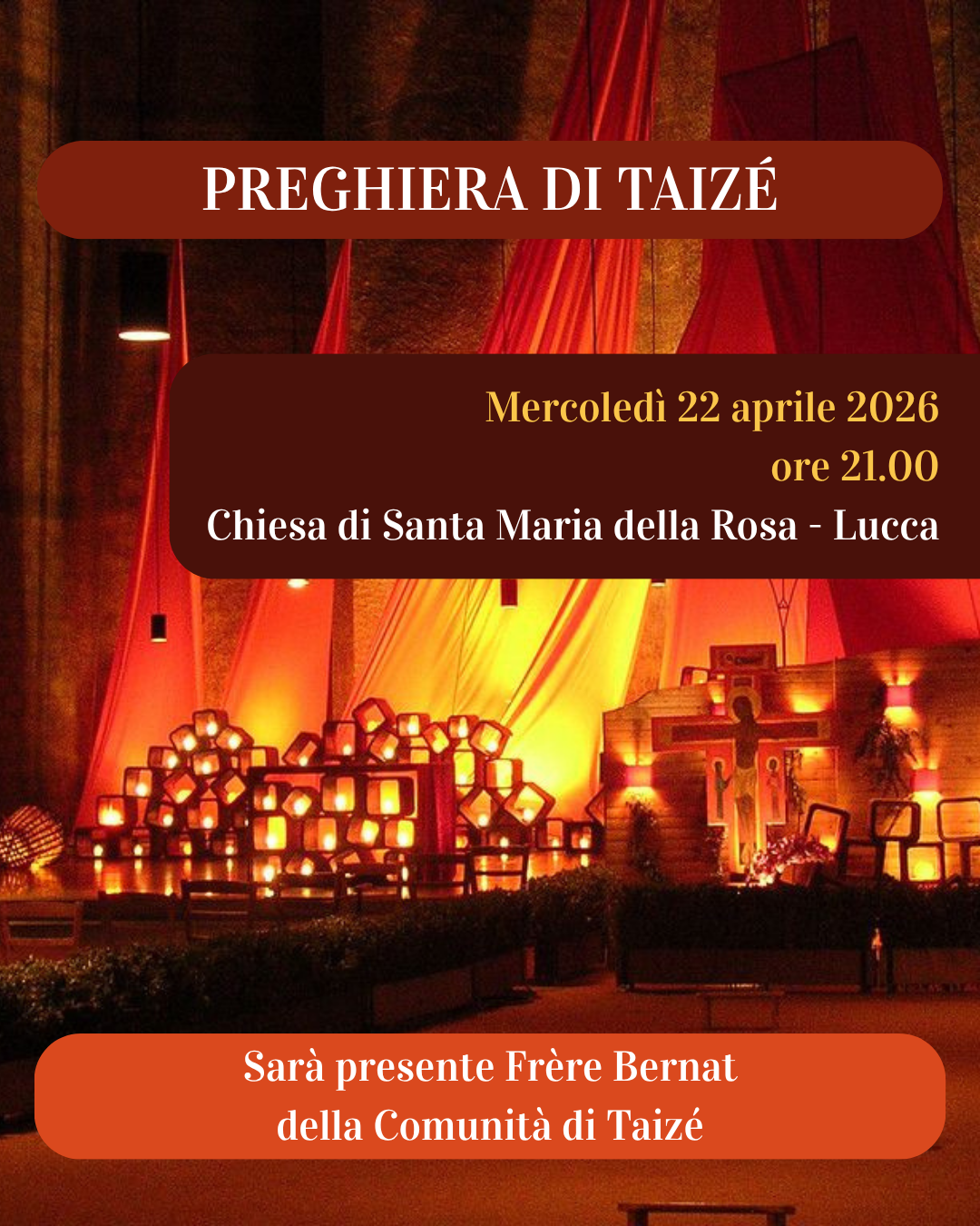 Preghiera di Taizé – 22 aprile 2026 13 Aprile 202613 Aprile 2026 laura Eventi diocesani 2026, In evidenza nello slider Lascia questo campo vuotociao Benvenuto!Iscriviti alla News Letter per ricevere tutte le novitàNon inviamo spam! Leggi la nostra Informativa sulla privacy per avere maggiori informazioni.Controlla la tua casella di posta o la cartella spam per confermare la tua iscrizione