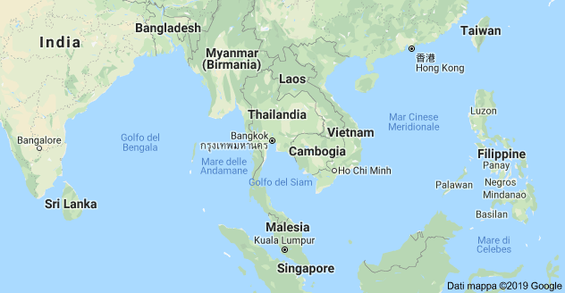La Thailandia è uno Stato del Sud-est asiatico, confinante con Laos e Cambogia a est, golfo di Thailandia e Malaysia a sud, con il mare delle Andamane e la Birmania a ovest, con Birmania e Laos a nord.